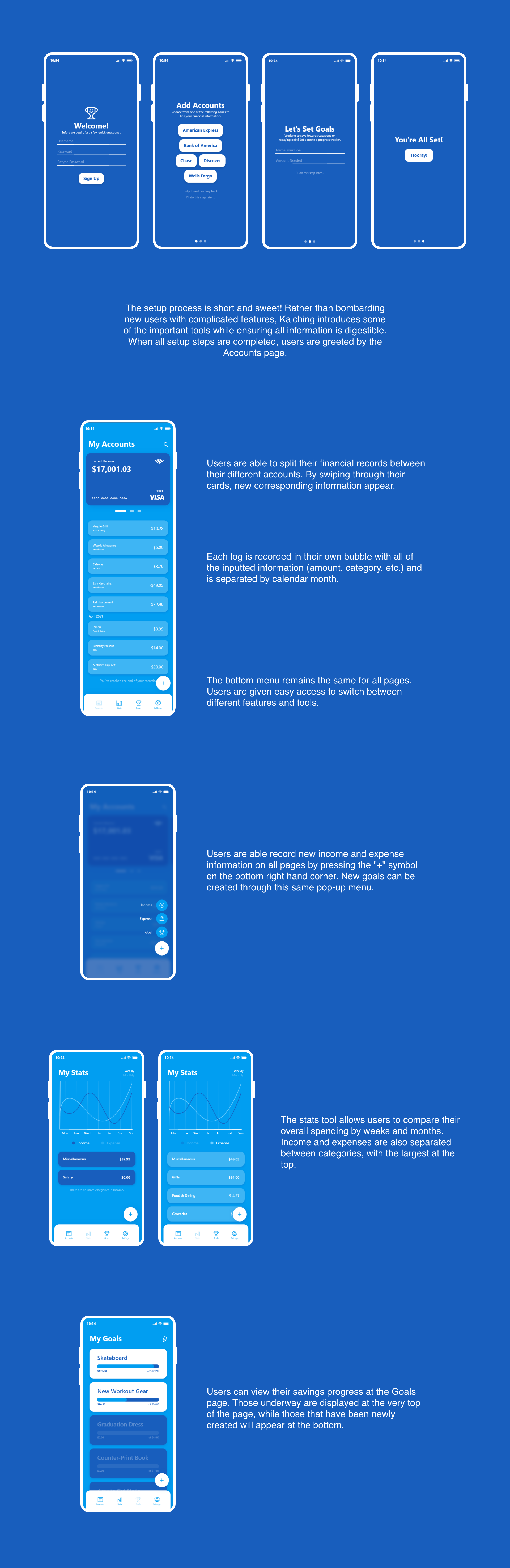 In today’s electronic age, few people still use paper records. Instead, many have turned to mobile apps and online platforms to store their information. Whether it be budgeting apps or expense trackers, there is an oversaturation of these digital record keepers in the app store, yet there seems to be a few common limitations. For many first time users, these personal finance apps are too complicated. Yet many experienced users complain about the lack of features and tools within these apps. The challenge is to create a user friendly expense tracker that provides users with digestible information while also incorporating a variety of tools.